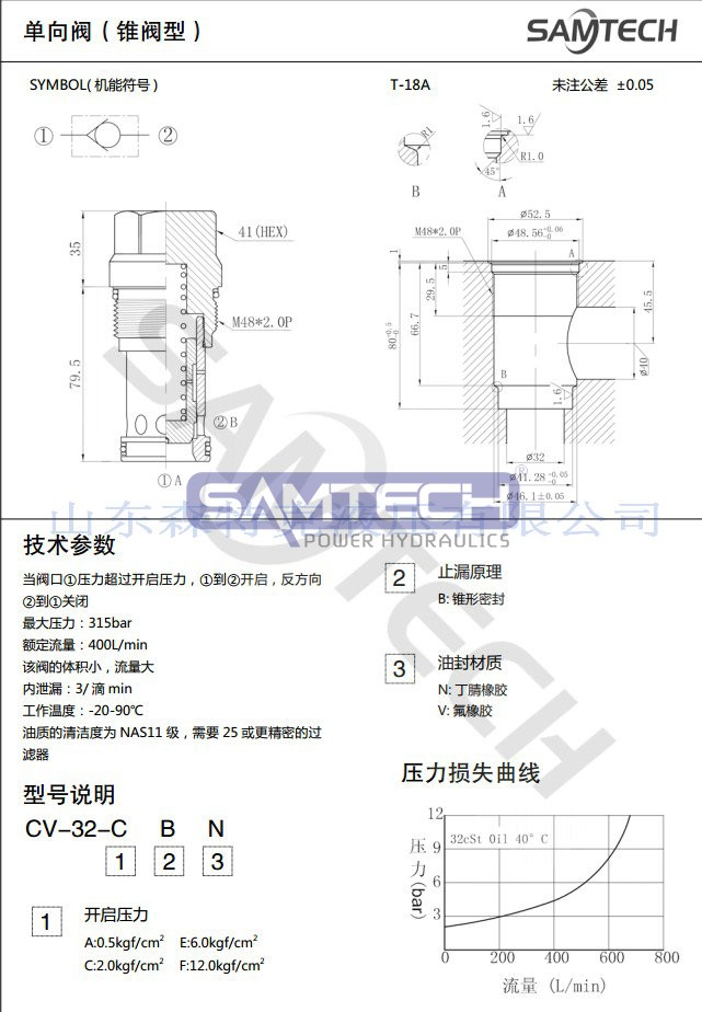 螺紋單向閥CV-32/DF25(錐閥型)液壓螺紋插裝閥螺紋插裝式 單向閥 保壓閥